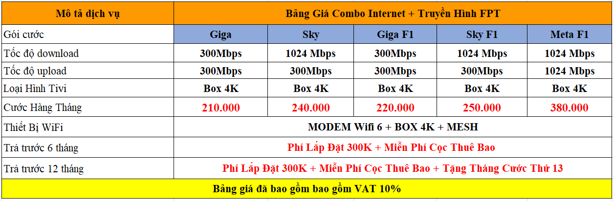 - Gói combo cơ bản: Internet + Truyền Hình 4K Ultra HD chỉ từ 230.000đ/Tháng